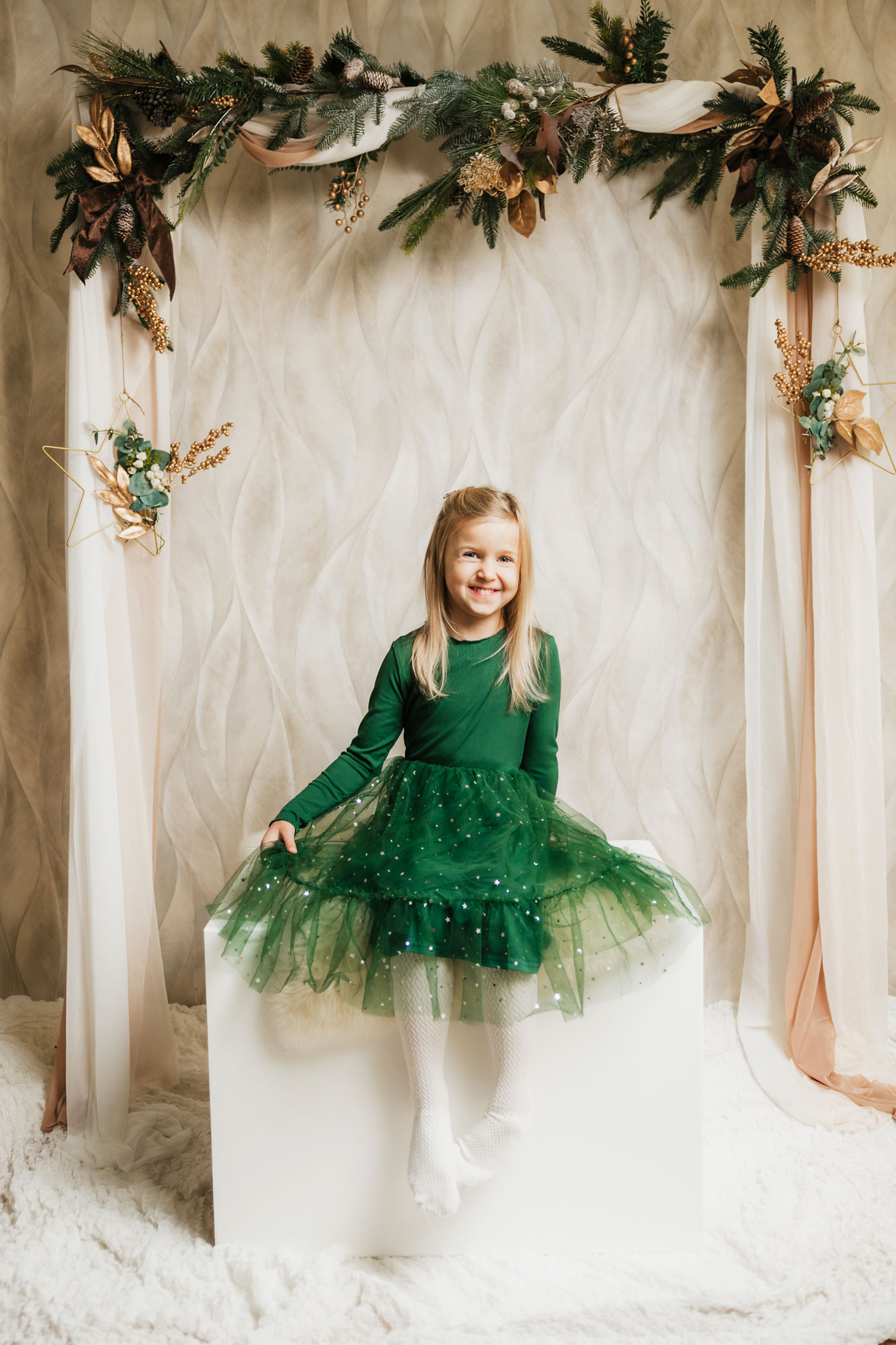 Die Shootings finden ab Anfang November in meinem gemütlich dekorierten Studio statt, das speziell für die Weihnachtsshootings eingerichtet ist. Von schönen Hintergründen bis hin zu sanften Lichtern – alles wird liebevoll arrangiert, um die perfekte Kulisse für deine Bilder zu schaffen. Dieses Jahr stehen uns sogar drei unterschiedliche Fotokulissen zur Verfügung.